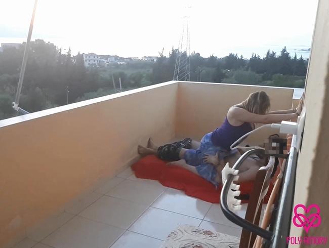 Paar wird auf dem Hotelbalkon gefickt